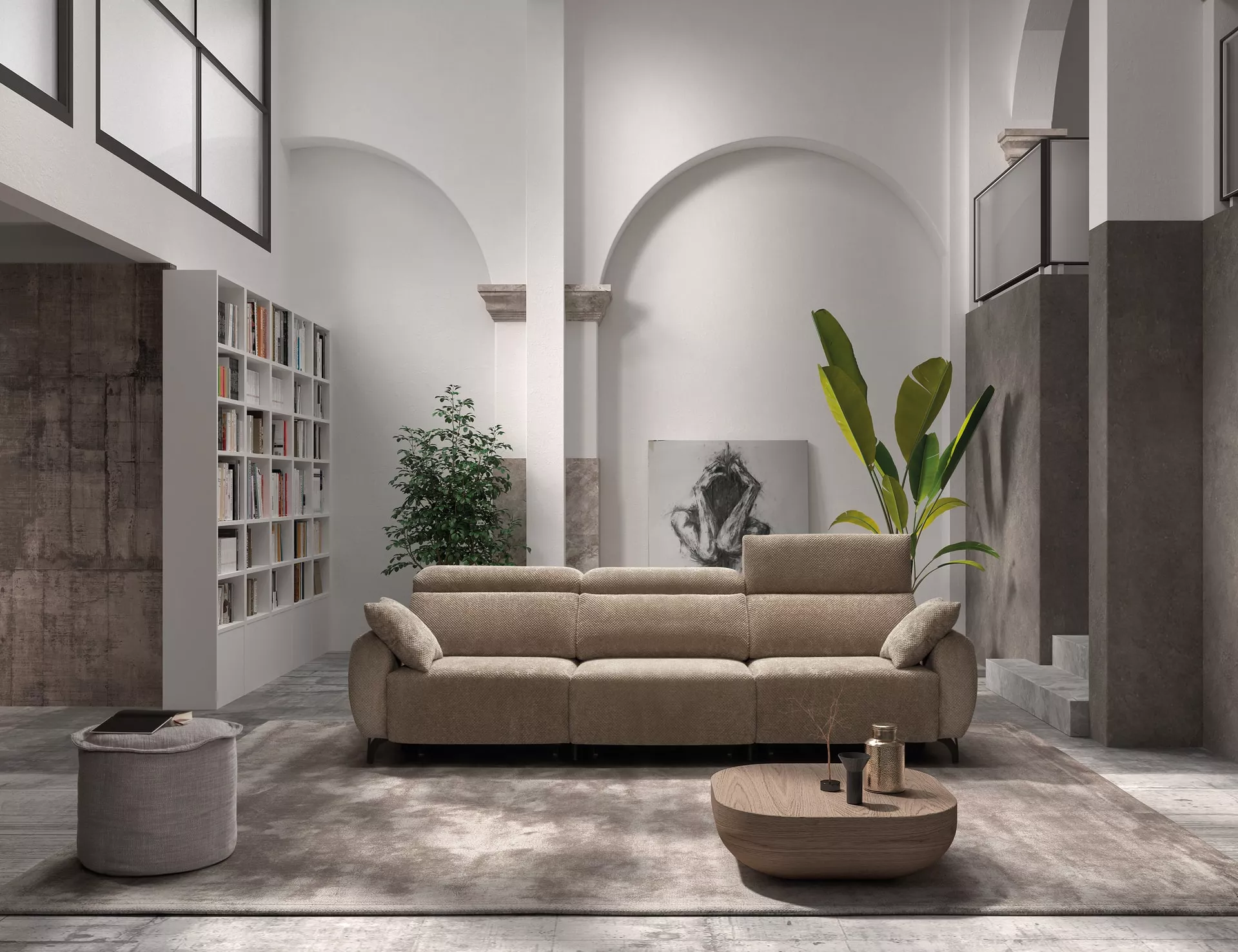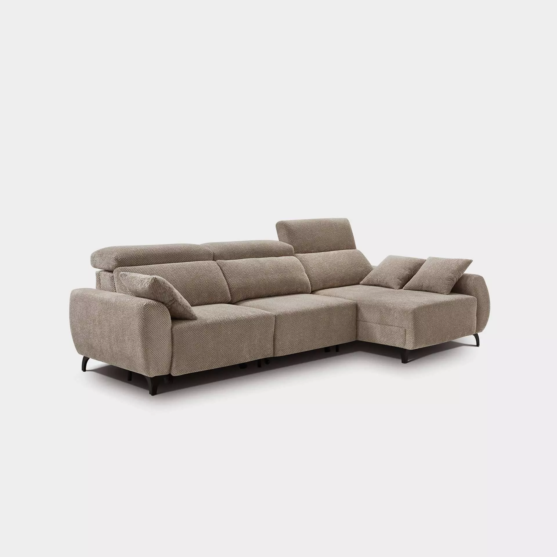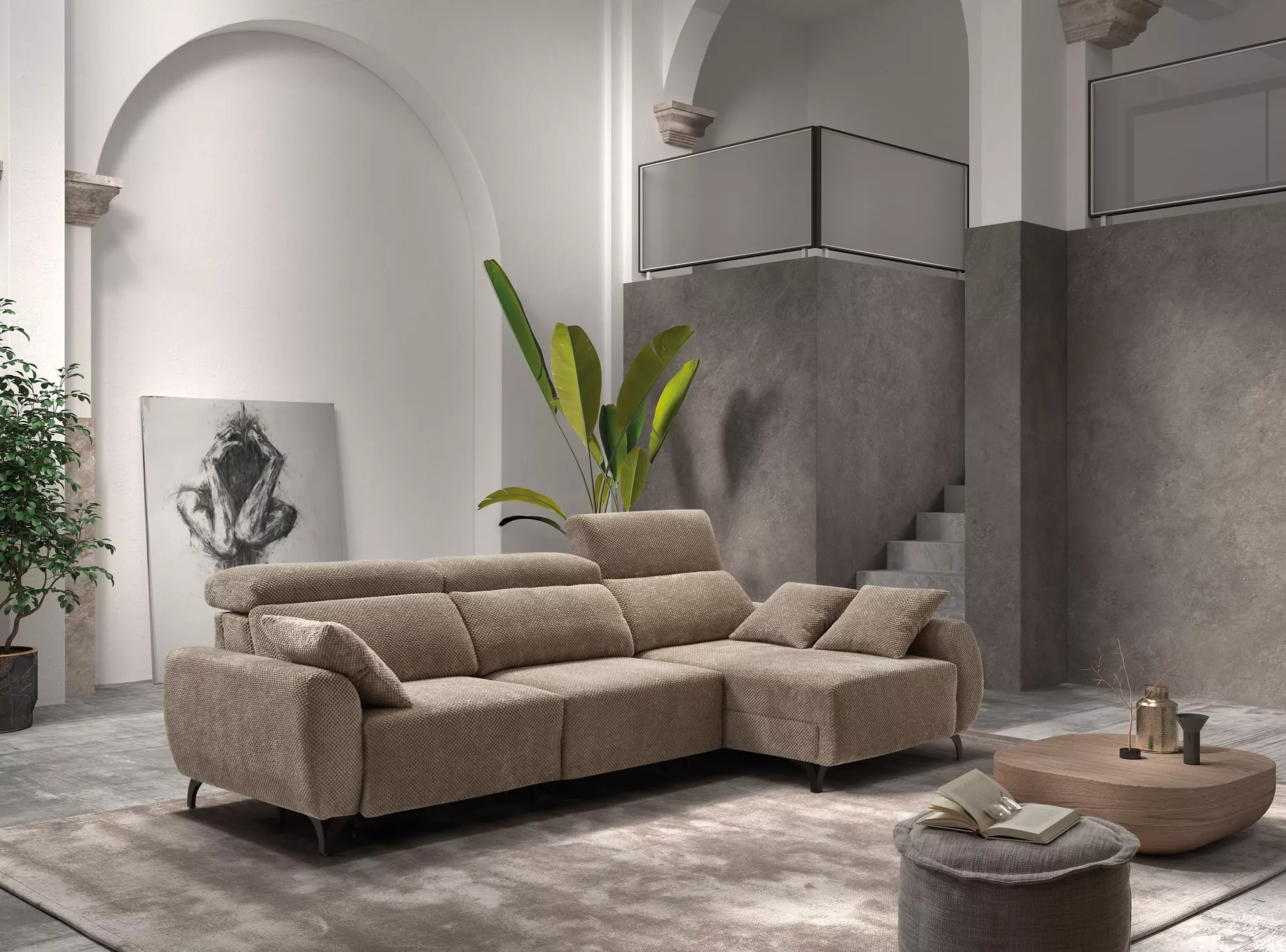 El Solio de Acomodel es un sofá de diseño moderno con sistema deslizante eléctrico que transforma el asiento en chaiselongue con un solo movimiento. Su estética ligera gracias a la pata alta metálica y sus cabezales abatibles lo convierten en una opción elegante, funcional y muy confortable para salones actuales.